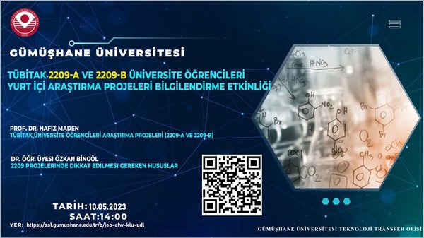 TÜBİTAK 2209-A Üniversite Öğrencileri Araştırma Projeleri Destekleme Programı ile 2209-B Üniversite Öğrencileri Sanayiye Yönelik Araştırma Projeleri Desteği Programı 2023/1. dönemi çağrısı kapsamında Üniversitemiz lisans ve önlisans öğrencilerine yönelik olarak çevrimiçi (online) bilgilendirme etkinliği gerçekleştirilecektir.